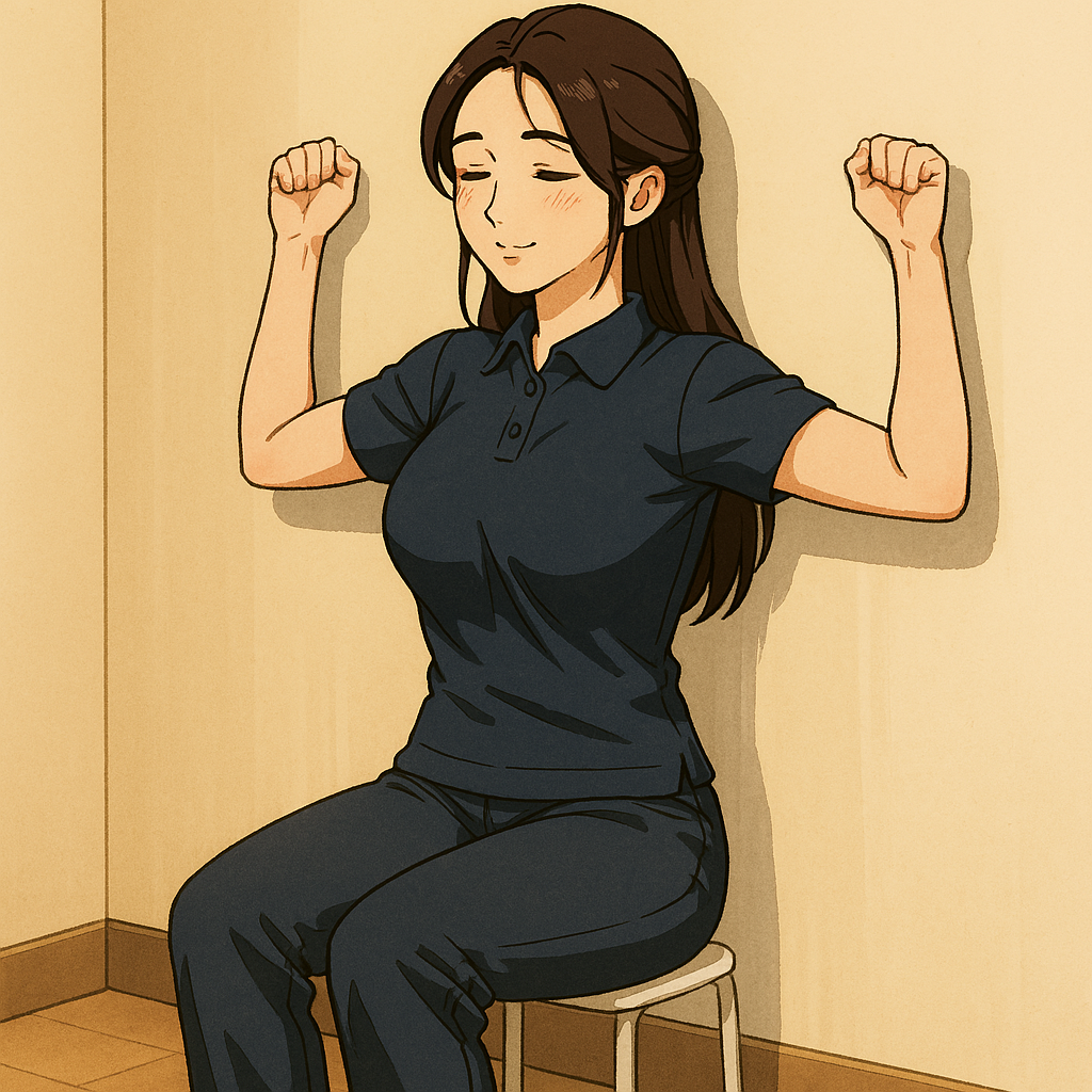 - 벽 앉기 스트레칭: 벽에 기대 앉은 채 팔을 위아래로 움직이기