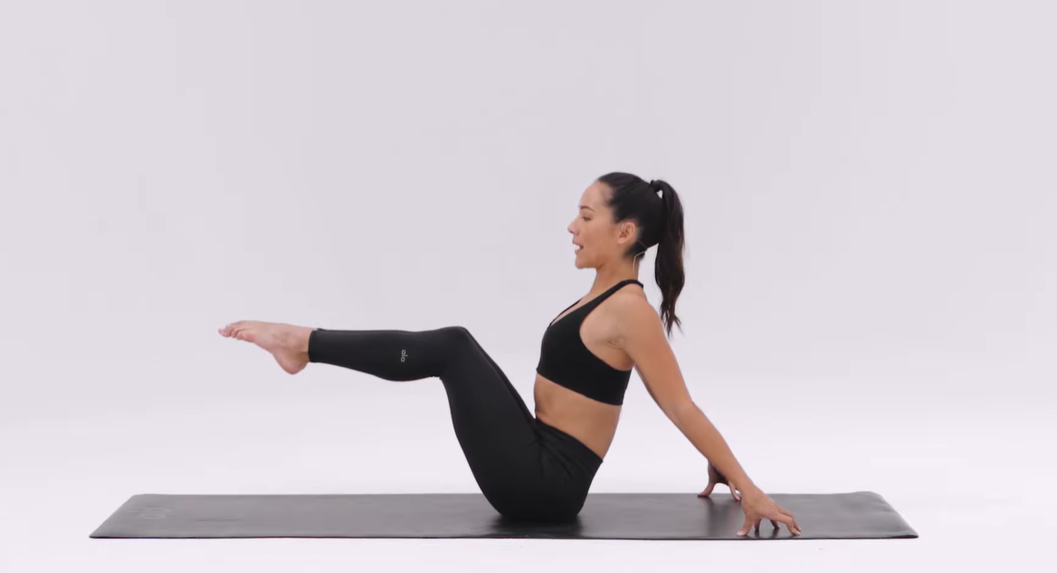 엉덩이를 바닥에 대고 상체를 45도 뒤로 기울이며, 다리를 들어 'V'자 모양을 만들면 복부 깊은 곳에서부터 근육이 떨리는 걸 느낄 수 있습니다.