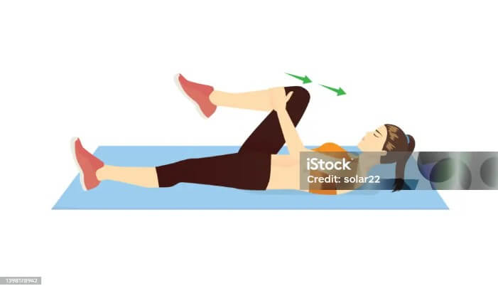 ✅ 무릎 당기기: 등을 대고 누운 상태에서 한쪽 무릎을 가슴 쪽으로 당겨 10초 유지 (좌우 5회씩)