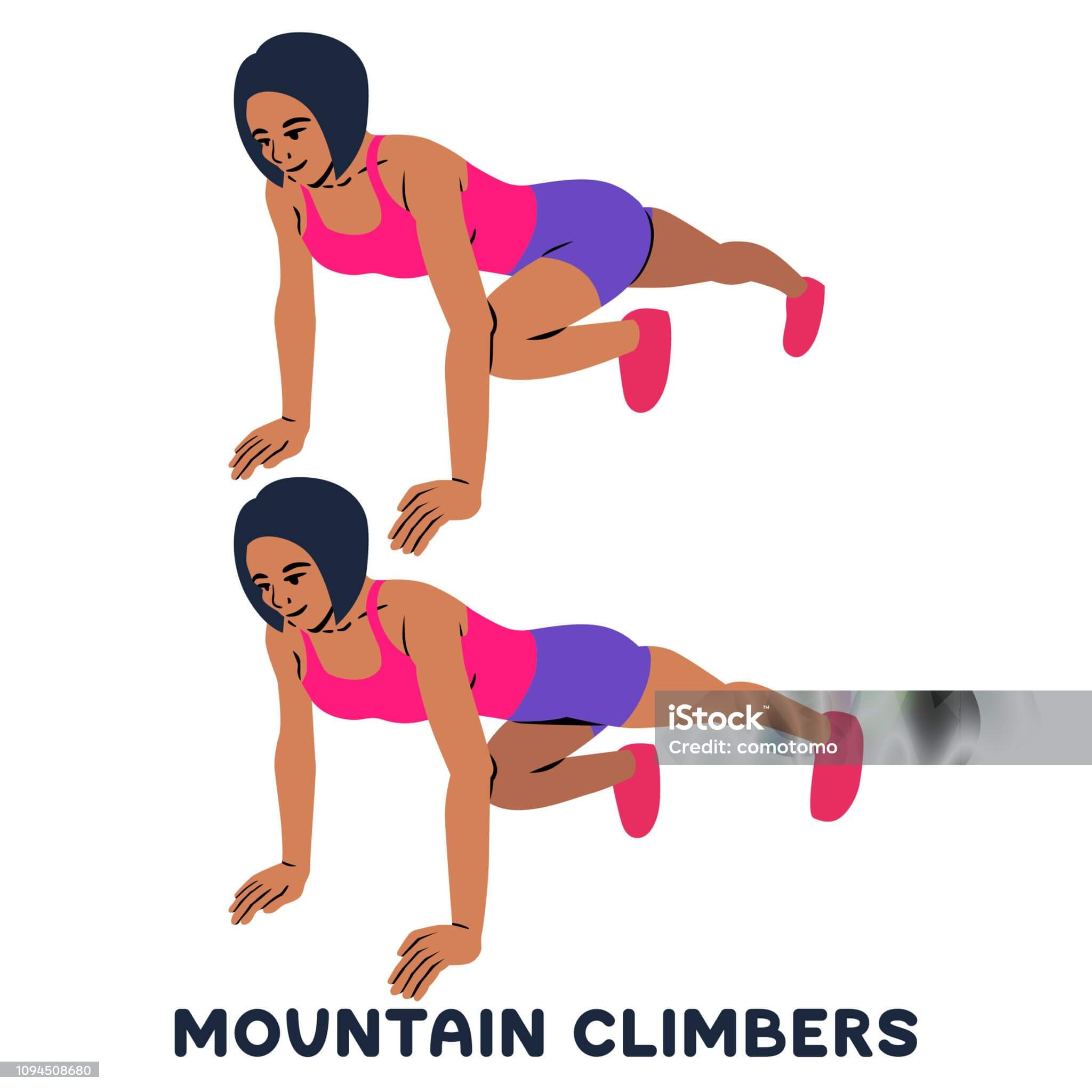첫 번째는 마운틴 클라이머. 플랭크 자세에서 무릎을 번갈아 가슴 쪽으로 빠르게 당기며 복부와 유산소 효과를 동시에 높이는 운동입니다.