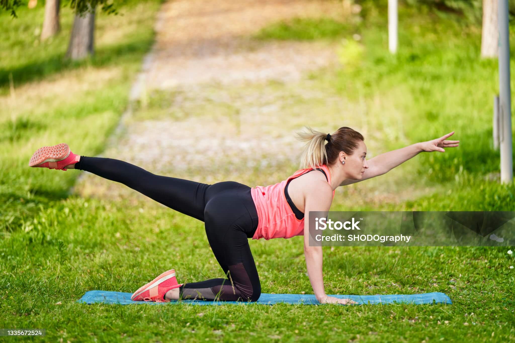 ✅버드독: 네발 기기 자세에서 교차 팔-다리를 들고 균형 잡기