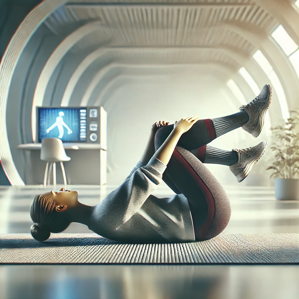 - 1단계: 누운 자세에서 두 무릎을 가슴 쪽으로 끌어안습니다.