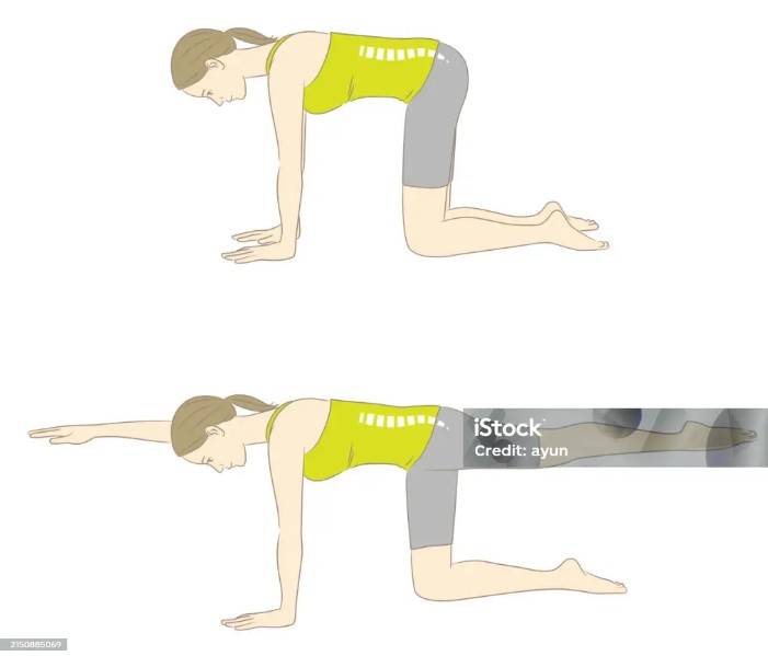 두 번째는 버드독(Bird Dog). 네발 자세에서 한쪽 팔과 반대쪽 다리를 들어올리고 5초간 유지하며 중심을 잡아줍니다. 척추 안정화와 코어 강화에 뛰어난 효과를 줍니다.