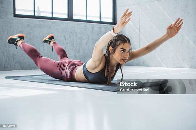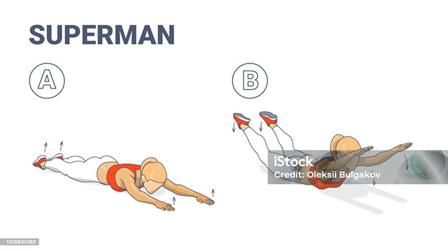 2️⃣슈퍼맨 자세: 엎드린 상태에서 팔과 다리를 동시에 들어올려 허리 강화