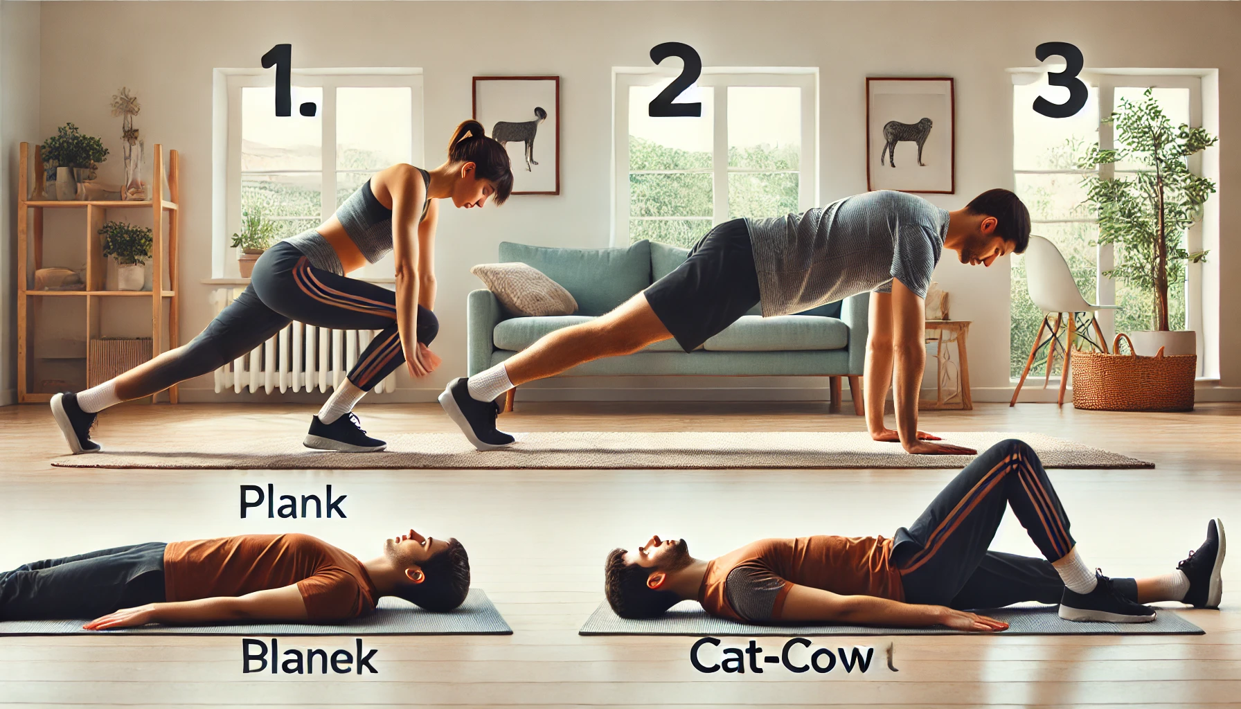 - 플랭크: 30초~1분 동안 몸을 일직선으로 유지하며 코어 근육을 강화하세요.