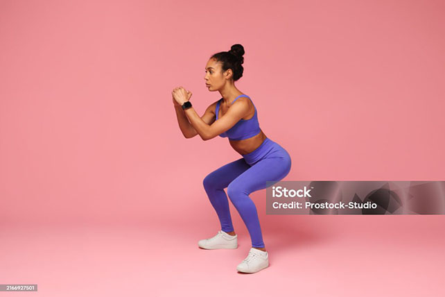 올라올 때는 허벅지가 아니라 엉덩이 힘으로 바닥을 밀어 올리세요.