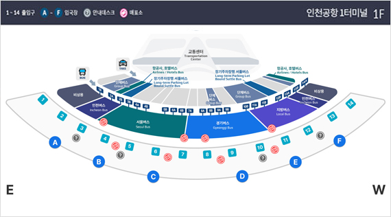공항에서 집으로 돌아가는 버스를 타기 위해서는 꼭 매표소에서 미리 버스표를 구매하고 대기장소에서 줄서서 탑승하셔야 합니다.